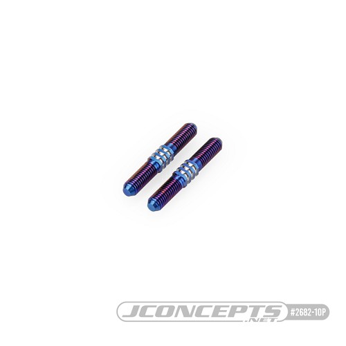 The JConcepts 2pc 5x35mm set is compatible with the front camber links of the D819 and E819 utilizing the Worlds Spec front end. The Fin turnbuckles are lightweight, and the original design brings out the glamour and quality that makes titanium one of the most sought-after exotic materials in the world. The JConcepts turnbuckles are produced with left and right-hand threads with the left conveniently marked for easy orientation.