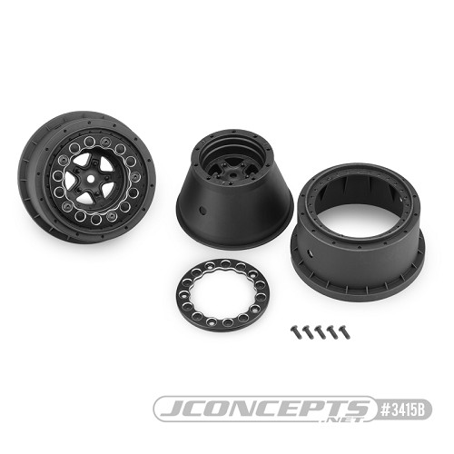 Beadlocks are sought-after accessories for the drag racing scene and JConcepts is on-point with the release of the Starfish Mambo beadlock wheel assembly. The 3-piece design pinches and holds the Mambos tire assembly together while providing one of the most scale looks on the circuit. The drag cars turn serious RPM’s, and the tires are under tremendous centrifugal force while in acceleration. The beadlock setup is constantly under stress to hold the assembly together. The system is recommended only while using 2s power and for normal on-track passes only. *Do not free rev the vehicle while using beadlock wheels.